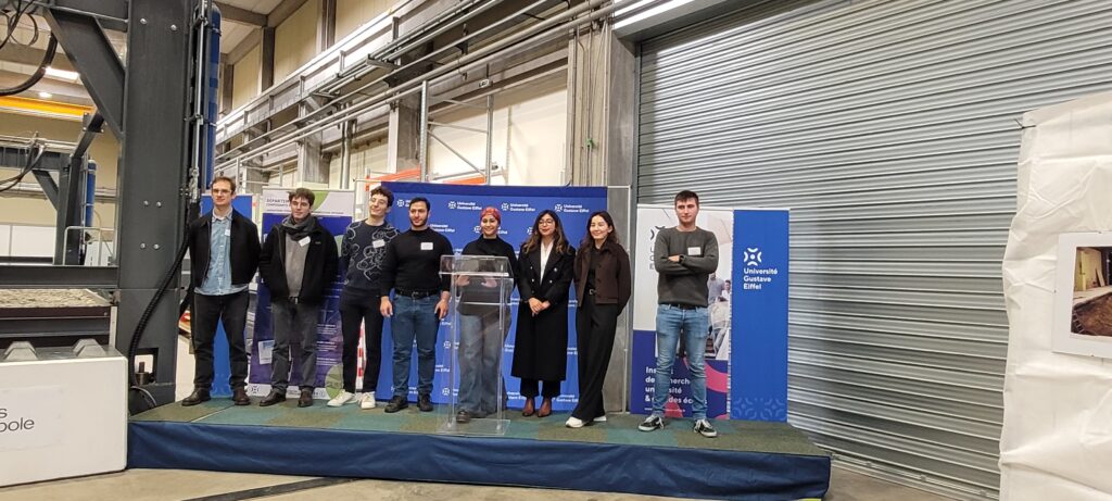 De gauche à droite : Johann PRIOU (Université Gustave Eiffel) / Jean-Baptiste PAGE (CentraleSupélec) / Hugo GABRIELIDIS (CentraleSupélec) / Mouhammed ACHHAB (CentraleSupélec) / Hibat BABTY (IREX) / Asmaa BENZIDANE (IREX) / Kuralay KADEKESHOVA (CentraleSupélec) / Antoine BARRÉ (Université Gustave Eiffel)